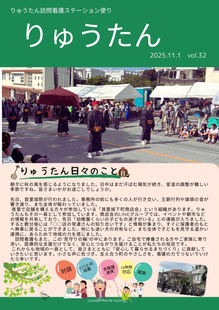 りゅうたん便り R7.11月号 2025年12月19日 最終更新日時 : 2025年12月19日 りゅうたんスタッフ Follow me! お気軽にお問い合わせください<i class="fas fa-phone-alt"></i>:098-882-5730営業時間:9:00~17:30(土曜・日曜日除く)メールはこちら FacebookXBluesky